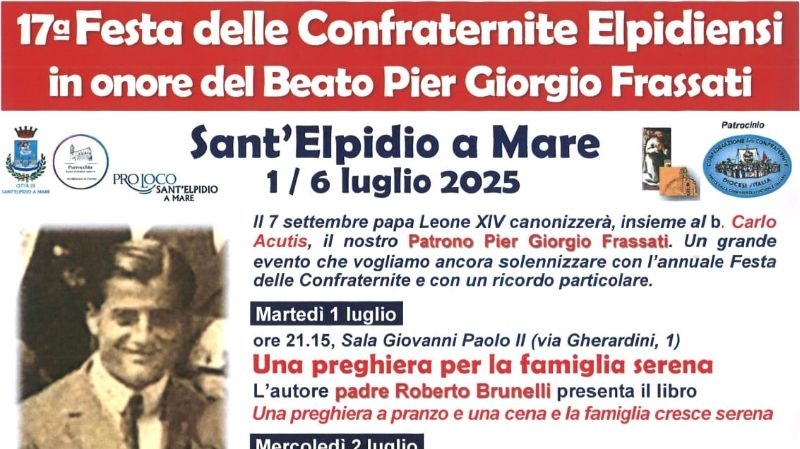 SANT’ELPIDIO A MARE – Si rinnova a Sant’Elpidio a Mare la Festa delle Confraternite elpidiensi in onore del beato Pier Giorgio Frassati, patrono delle Confraternite italiane, ormai un appuntamento fisso dell’estate di Sant’Elpidio a Mare giunto alla 17.a edizione.