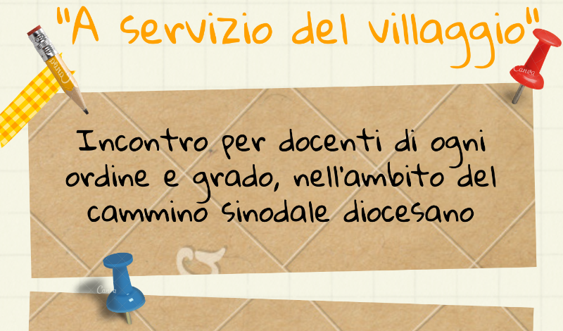 “A servizio del villaggio. Incontro per docenti di ogni ordine e grado, nell’ambito del cammino sinodale diocesano”.