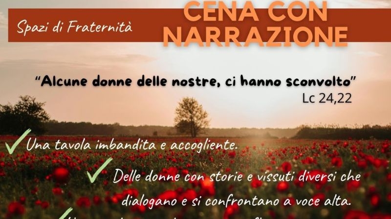 Una cena dove oltre a condividere il cibo e la fraternità, si ascolta e interagisce con alcune ospiti che portano il loro vissuto, la loro scelta di vita, ma ancor di più le loro domande.