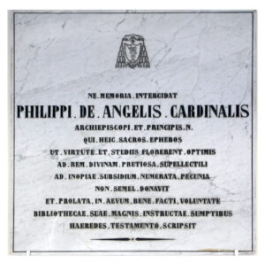 È stata fondata nel 1770 grazie all’eredità del Cardinale Filippo De Angelis.