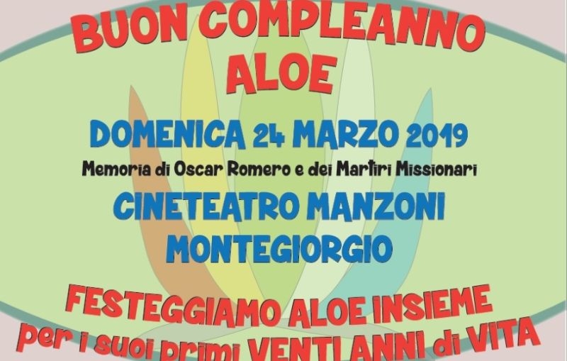 L’associazione missionaria Aloe Onlus di Fermo compie i suoi 20 anni di attività! Nata con l’obiettivo di far conoscere i progetti dei missionari fermani presenti nei paesi del sud del mondo, l’associazione ha negli anni organizzato eventi, manifestazioni, convegni, incontri, mostre fotografie, concerti, progetti nelle scuole, al fine di sensibilizzare le persone ai temi della solidarietà, del volontariato internazionale e dell’incontro con altre culture e religioni. 20 anni di progetti, 20 anni di testimonianze raccolte e raccontate in una bellissima festa che si terrà a Montegiorgio, luogo importante per il riconoscimento dato ad uno dei missionari più carismatici che l’associazione ha conosciuto e aiutato: Lucidio Ceci, a cui oggi è dedicata la scuola elementare e una lapide commemorativa in piazza Matteotti. Sarà presente alla manifestazione S.E. Mons. Rocco Pennacchio che parteciperà alla riunione pomeridiana delle 16.00  e poi presenzierà la Celebrazione eucaristica delle 18.30 presso la Parrocchia dei Santi Nicolò e Giovanni Battista di Montegiorgio. Hanno assicurato la loro presenza anche alcuni missionari presenti sul territorio. VI ASPETTIAMO PER FESTEGGIARE INSIEME e per conoscere il nostro operato in 20 anni di vita associativa! Il programma nella locandina allegata
