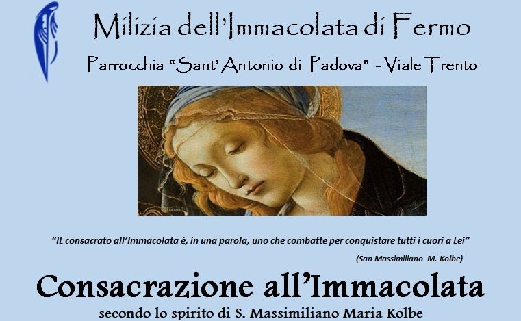 Il gruppo locale di Fermo della Milizia dell’Immacolata – associazione pubblica cattolica internazionale di fedeli – sta organizzando un corso di formazione per chi intendesse consacrarsi all’Immacolata secondo la spiritualità di S.Massimiliano Kolbe.