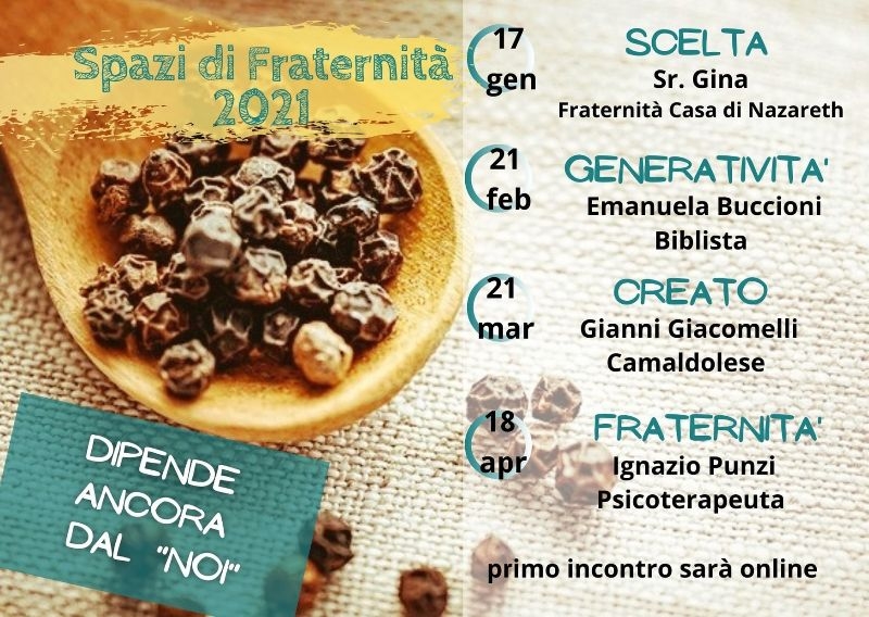 Prontissimi per un nuovo spazio di confronto e approfondimento di Spazi di Fraternità. Domenica 21 Marzo su piattaforma zoom (vi sarà indicato il link per accedere la domenica mattina).