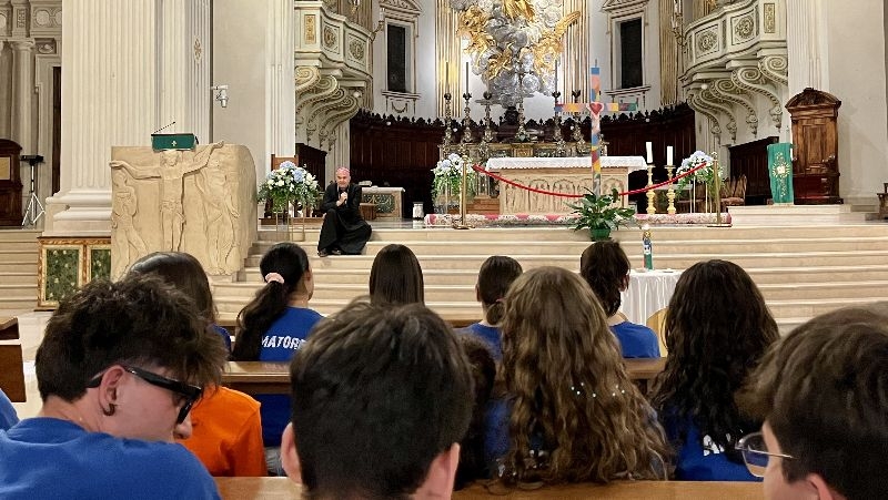 Concluso anche questo momento, è stato proclamato il brano del Vangelo di Matteo al cap. 13, in cui Gesù invita appunto ad essere luce, sale e lievito, e prima della riflessione proposta dall’Arcivescovo Rocco, è stata data la parola a tre diversi giovani che hanno rispettivamente presentato quanto scritto nei tre diversi cartelloni: “luce quando”, “sale quando” e “lievito quando”. Solo dopo aver fatto risuonare le parole dei giovani come risposta al vangelo ascoltato, l’Arcivescovo ha preso la parola, invitando a sua volta tutti i presenti, come Gesù nel Vangelo, ad essere segno, testimoni, annunciatori gioiosi della loro fede nei confronti dei più piccoli durante i giorni dei grest in oratorio.