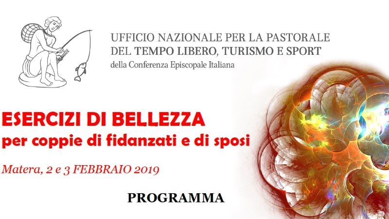 Pertanto, vi invito ad accogliere l’invito ad iscrivervi e a partecipare ai primi Esercizi di Bellezza, esercizi spirituali per coppie di fidanzati e di sposi, che si svolgeranno a Matera dal 2 al 3 febbraio 2019. L’iscrizione è online al seguente link