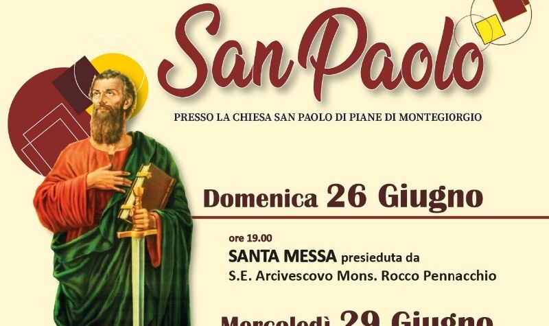 Anche quest’anno la parrocchia San Paolo Apostolo di Piane di Montegiorgio è lieta di accogliervi durante la festa tradizionale in onore di San Paolo, organizzata in collaborazione con l’associazione culturale Parrocchia san Paolo. Quest’anno tanti gli appuntamenti e diversi tra loro per cercare di coinvolgere molte persone, giovani e meno giovani, sportivi e non, per iniziare di nuovo a stare insieme, a condividere ed anche ad emozionarci. Vi invitiamo a consultare le locandine di seguito per tutti i dettagli.