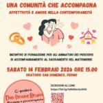 Sabato 14 febbraio 2026, alle ore 15.00 presso l’Oratorio San Domenico di Fermo, si terrà l’incontro formativo “Una comunità che accompagna. Affettività e amore nella contemporaneità”, rivolto agli animatori dei percorsi di preparazione al matrimonio. L’incontro sarà guidato da Don Simone Bruno, psicologo e psicoterapeuta e direttore editoriale di Edizioni San Paolo, con un approfondimento orientato a fornire chiavi di lettura e strumenti di accompagnamento pastorale adeguati alle sfide del contesto contemporaneo.