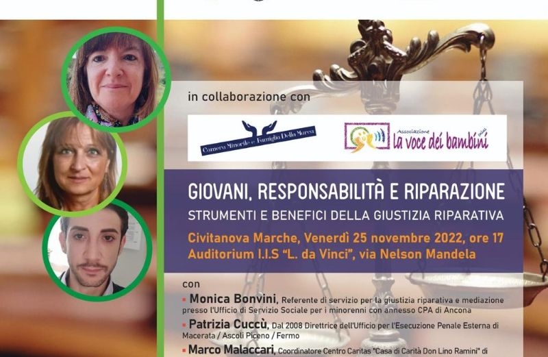 E’  programmato  per venerdì  25 novembre , il seminario sul tema GIOVANI, RESPONSABILITA’ E RIPARAZIONE. STRUMENTI E BENEFICI DELLA GIUSTIZIA RIPARATIVA,