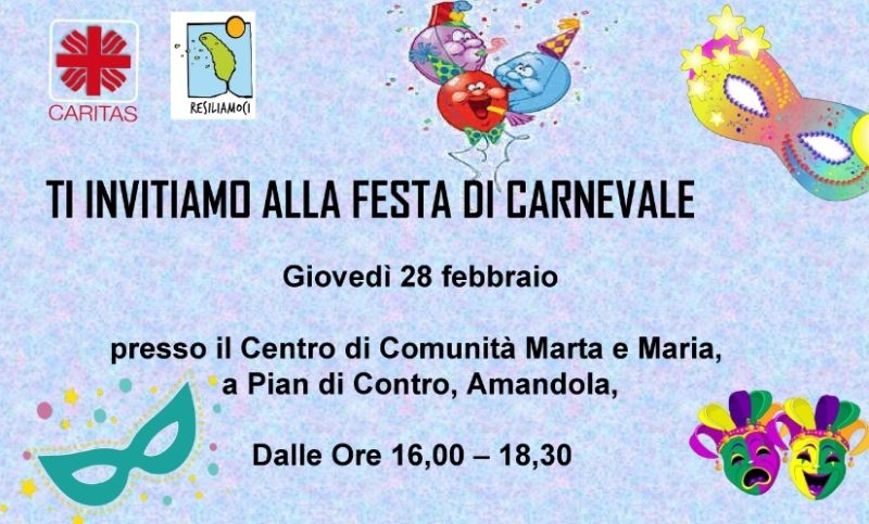 Si festeggia il carnevale al Centro di Comunità Marta e Maria ad Amandola giovedì 28 febbraio dalle ore 16:00.