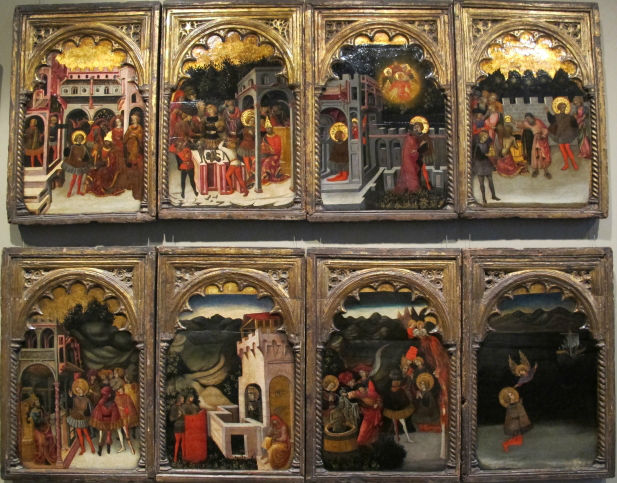 Il prof. Papetti parlerà dei due polittici di Sant’Elpidio, illustrandolo con immagini. Il primo è quello di Giacomo di Nicola da Recanati (1425 ca.): nove pannelli che raccontano il leggendario del Santo, custodito fino al 1797 nella sagrestia della Collegiata poi, probabilmente trafugato dai napoleonici durante l’insorgenza, trafugato e, dopo varie vicissituini, oggi al Musée des Artes ed Decorations al Louvre di Parigi (restano soltanto otto dei nove pannelli originali).