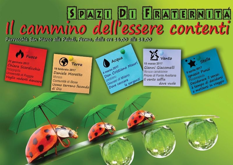 Il cammino dell’essere contenti approda, in questo secondo incontro, sull’elemento della terra. La nostra umanizzazione, la pienezza della vita, il cogliere profondamente in noi l’essenziale della nostra esistenza, sembra questo il volere, il desiderio profondo di Dio.
