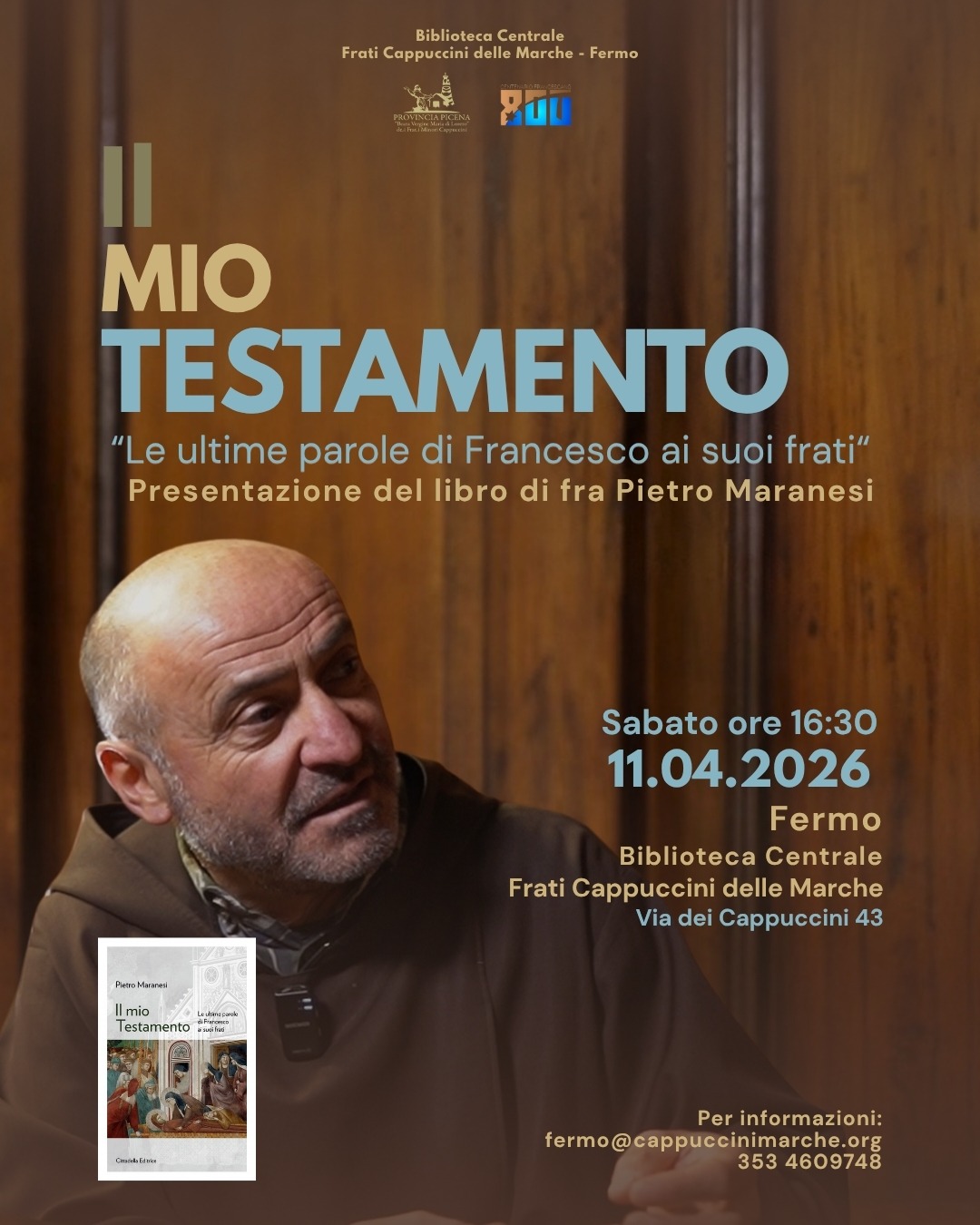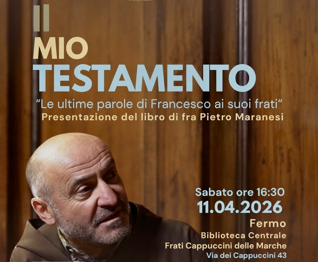È in programma per sabato 11 aprile, alle ore 16.30 presso la biblioteca Provinciale dei Frati Cappuccini di Fermo, la presentazione del libro di fra Pietro Maranesi, dal titolo “Il mio Testamento. Le ultime parole di Francesco ai suoi frati”.