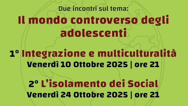 Il mondo adolescenziale contemporaneo si trova più di altre categorie di età a vivere una situazione profondamente multietnica grazie ai propri compagni di scuola e di divertimenti provenienti dal mondo degli immigrati, oppure dal modo dell’adozione internazionale. Il primo incontro infatti avrà come focus del discorso le problematiche dell’ “Integrazione e multiculturalità”.