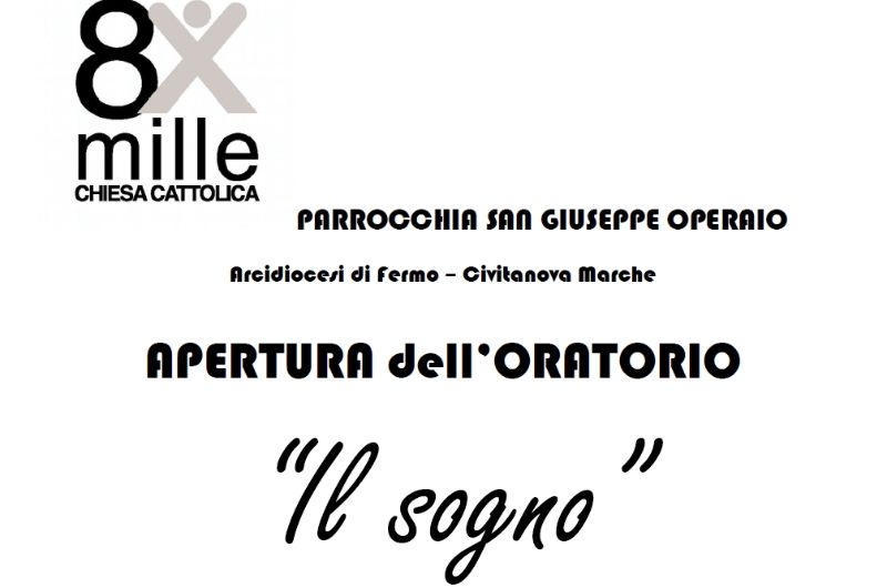 Grazie al cofinanziamento dei fondi 8×1000 della Chiesa Cattolica Italiana, a seguito del decreto arcivescovile di assegnazione dei contributi 8×1000, la Parrocchia San Giuseppe Operaio di Civitanova Marche inaugura l’Oratorio Parrocchiale “Il sogno” per le attività pastorali estive e invernali rivolte a bambini e giovani. Il contributo assegnato di 15.000 euro – insieme all’investimento di 1.500 euro da parte della Parrocchia – consente di offrire uno spazio e un tempo a misura di bambini e ragazzi con l’intento di proporre una crescita umana e spirituale secondo lo stile dell’amicizia evangelica.