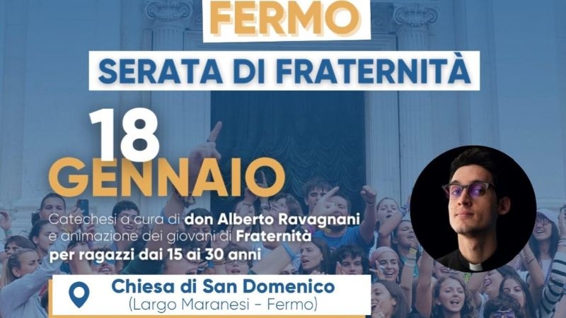 Tutto è ormai pronto per l’incontro di sabato 18 gennaio fra i giovani di Fraternità ed i giovani dell’Arcidiocesi di Fermo. In occasione del Settenario della Madonna del Pianto, l’equipe diocesana di Pastorale Giovanile – chiamata a curare il “momento giovani” del Settenario – per il secondo anno di seguito ha coinvolto don Alberto Ravagnani, sacerdote di Milano, ed i giovani di Fraternità per due speciali momenti nel pomeriggio di sabato prossimo: uno a numero chiuso per giovani dai 15 ai 30 anni su prenotazione ed un altro aperto a tutti.