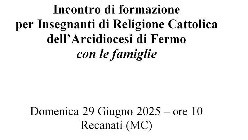 L'Ufficio per l'Insegnamento della Religione Cattolica invita tutti gli insegnanti Domenica 29 Giugno a Recanati