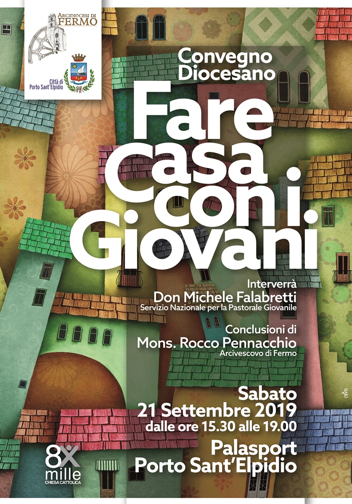 Tutti i giovani, gli animatori/educatori, gli operatori pastorali, sacerdoti, diaconi, laici, religiosi/e, membri di organismi di partecipazione, movimenti ed associazioni, sono convocati al Palasport di Porto Sant'Elpidio Sabato 21 Settembre, dalle ore 15.30 alle 19, per il Convegno Diocesano. Interverranno don Michele Falabretti, responsabile Pastorale Giovanile CEI, e l'Arcivescovo Rocco