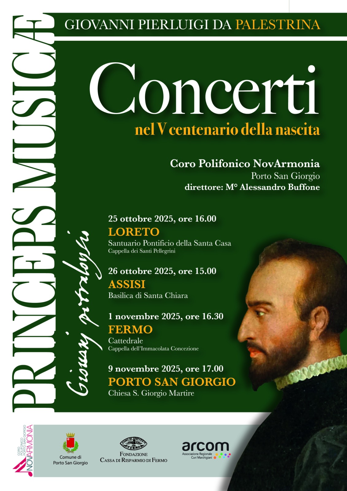 Stiamo parlando di “Princeps Musicae”, la serie di concerti nel V centenario della nascita di Giovanni Pierluigi da Palestrina, che dopo Loreto ed Assisi, il 1 novembre farà tappa in Cattedrale a Fermo alle ore 16.30.