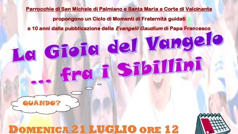 L’unità Pastorale delle Ville d’Ascoli propone per Domenica 21 Luglio un picnic in fraternità a Meschia. Ritrovo dalle ore 12 per preparare il Pranzo condiviso, dove ognuno può portare qualcosa, mentre la Confraternita del SS. Sacramento di Meschia offrirà la pasta come primo piatto caldo. Dopo il pasto si avrà certamente tempo di relax in compagnia, oltre alla proposta di un itinerario guidato per scoprire le ricchezze che il territorio offre. Alle ore 17 è previsto poi l’incontro con don Federico Fabris, presbitero della Diocesi di Vicenza, che salirà appositamente fra i monti Sibillini anche per presentare il suo libro “La Chiesa che vorrei. I giovani sollecitano la comunità cristiana”, per avere certamente un piacevole confronto su questo tema ed affini con i partecipanti. Il pomeriggio comunitario si concluderà con una merenda a base di dolci, per scendere rigenerati dall’esperienza vissuta insieme.