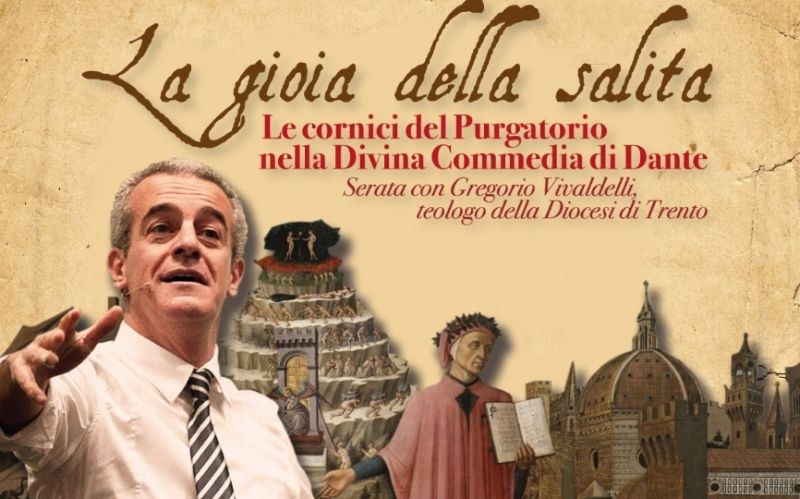 Dopo una prima visione d’insieme del viaggio di Dante, Vivaldelli descriverà – con un linguaggio appassionato e coinvolgente – la salita di Dante insieme a Virgilio lungo le sette cornici della montagna del Purgatorio.