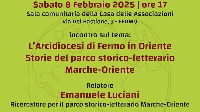 Cominciamo Sabato 8 Febbraio, alle ore 17.00 presso la Sala comunitaria della Casa delle Associazioni, via Del Bastione 3 – Fermo, con un incontro di carattere storico attraverso il quale analizzeremo la storia dei missionari fermani in Asia. Uno sguardo storico-letterario sui molteplici legami che hanno collegato il territorio e la Diocesi di Fermo al continente asiatico, a partire dal XIII secolo, fino al presente: “L’Arcidiocesi di Fermo in Oriente