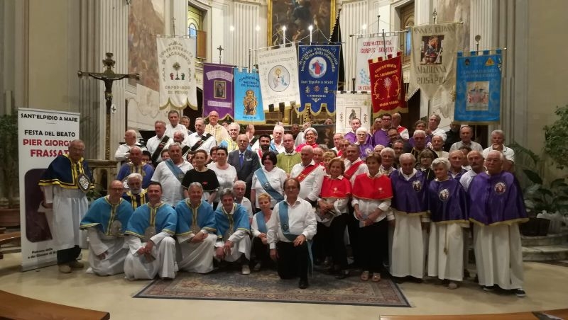 SANT’ELPIDIO A MARE – Il tradizionale incontro delle Confraternite riunitesi prima in preghiera nella Basilica della Misericordia poi per la Messa nella Perinsigne Collegiata, ha chiuso a Sant’Elpidio a Mare l’11ª Festa in onore del patrono beato Pier Giorgio Frassati.