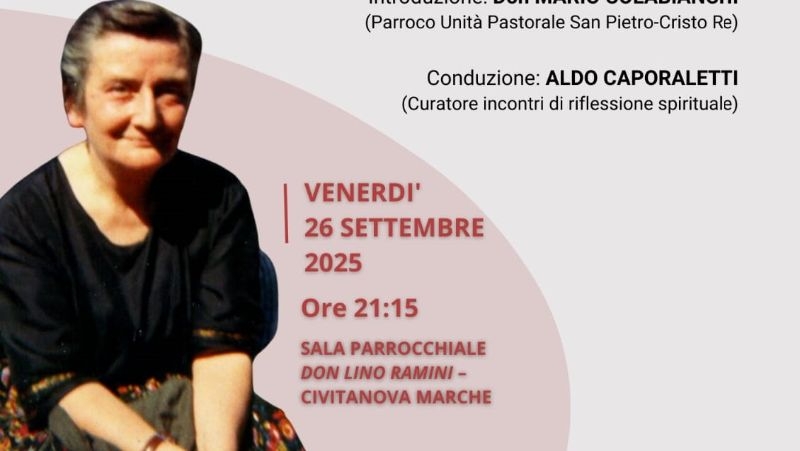 Un incontro per conoscere una testimone di fede, poesia e speranza. Venerdì 26 Settembre alle ore 21.15 presso la sala don Lino Ramini a Civitanova