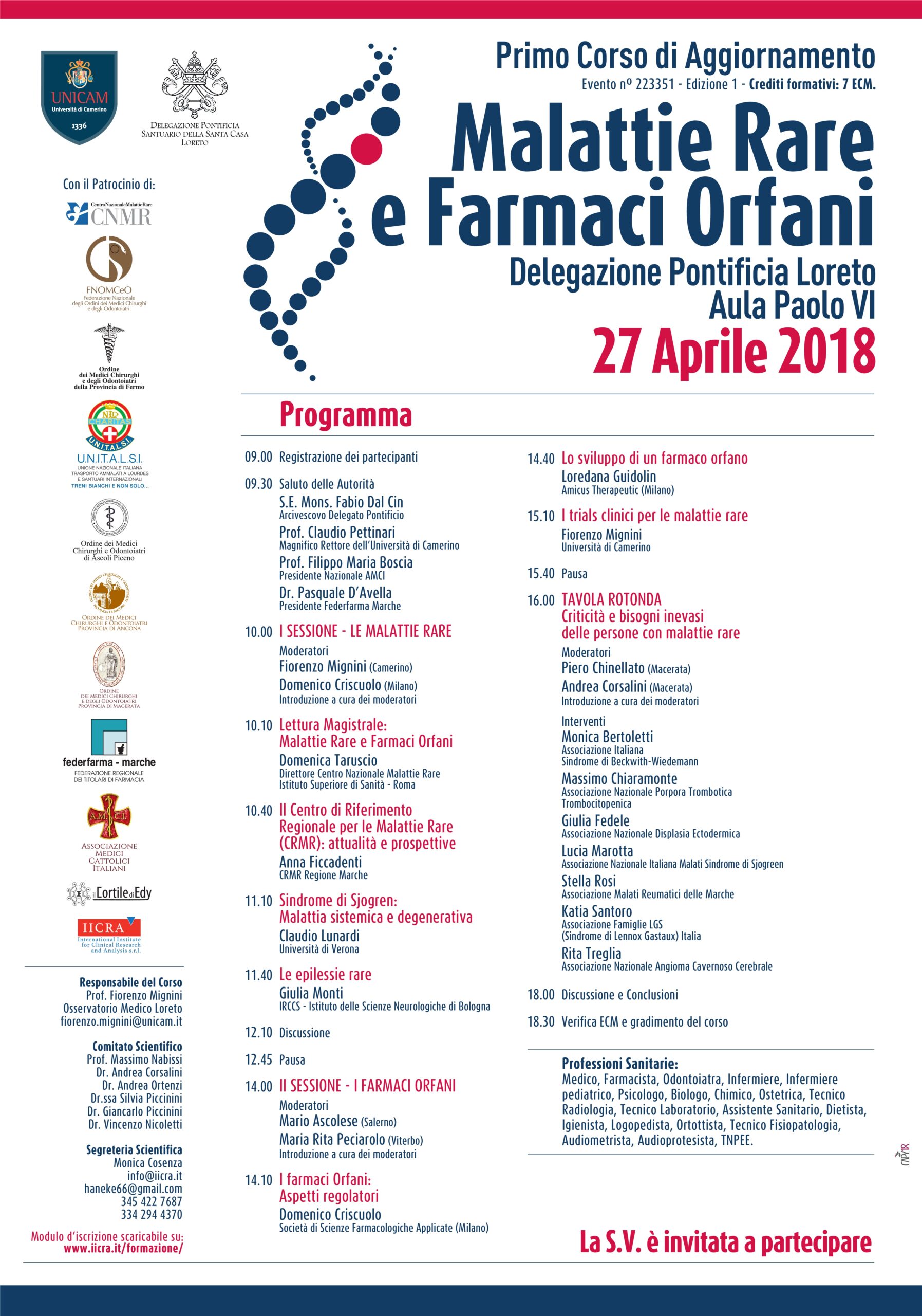 Questo primo incontro, coordinato dal presidente dell’Associazione Medici Cattolici Italiani della sezione di Fermo, prof. Fiorenzo Mignini, è stato fortemente desiderato dal Delegato Pontificio della Santa Casa di Loreto Arcivescovo Mons. Fabio Dal Cin. Nell’evento si darà voce (cosa non consueta) anche ai malati: malati rari e autoimmuni, malati “invisibili” e, in generale, pazienti “complessi”. Tutte condizioni in cui la diagnosi è difficile o impossibile e la possibilità di una terapia è ancora molto lontana. Nella diagnosi precoce di una malattia rara il medico di Medicina Generale occupa una posizione strategica; i malati infatti si trovano a dover affrontare enormi difficoltà sia diagnostiche che terapeutiche spesso come conseguenza di logiche di potere che tendono a prevalere negli ambiti sanitario e farmaceutico. All’interno di questo orizzonte vengono a definirsi i “farmaci orfani” che, destinati alla cura delle malattie talmente rare, non consentono la realizzazione, da parte delle aziende farmaceutiche, di ricavi che permettano di recuperare i costi sostenuti per il loro sviluppo. Queste logiche di mercato appartengono a un sistema che il Sommo Pontefice Francesco non esiterebbe a definire «ingiusto alla radice». Questi malati possono essere realisticamente definiti emarginati, “ultimi”.
