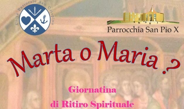 La Parrocchia San Pio X di Porto Sant’Elpidio propone per i propri Catechisti – Educatori – Animatori una breve giornata di Ritiro Spirituale presso il Monastero Sant’Anna di Foligno il prossimo Martedì 11 Aprile, guidato da suor Lorella Mattioli. Il programma prevede al mattino la spiegazione degli affreschi del chiostro, in cui spiccano le figure di Marta e Maria, che ispireranno anche la catechesi della religiosa, incentrata sul tema della speranza. Dopo il pranzo nel luogo di ritiro, nel pomeriggio è previsto attività di laboratorio e condivisione fino alle ore 17 circa. Se altre Parrocchie intendono unirsi a questa esperienza, possono contattare don Lorenzo (346/5771896 – torrenzo79@gmail.com).