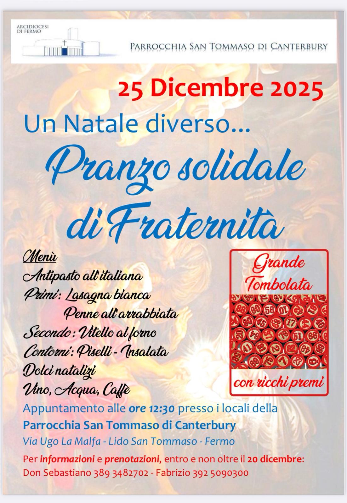 Questo il titolo di un evento organizzato dalla Parrocchia San Tommaso di Canterbury per il prossimo Natale 2025. Un pranzo insieme per festeggiare al meglio il giorno di Natale.