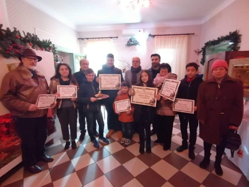 Si è chiusa con la cerimonia di premiazione dei vincitori del 12° concorso “Presepe in famiglia”, iniziativa che vuole sottolineare il valore di fede e tradizione del presepe. Dopo i saluti del Vicesindaco Mirco Romanelli, del presidente dell’Academia Giovanni Martinelli e del coordinatore della manifestazione Giacomo Rosetti, la consegna dei premi: vincitore Paolo Corvari (a lui il premio intitolato alla memoria di Cesare Martinelli); dietro di lui Anna Maria Maurizi (premio memoriale Antenore Martufi) e Matilde Marini. Premio speciale a quattro bambini: Sibilla Leoni, Michele Catalini, Leonardo e Ismaele Corvari.