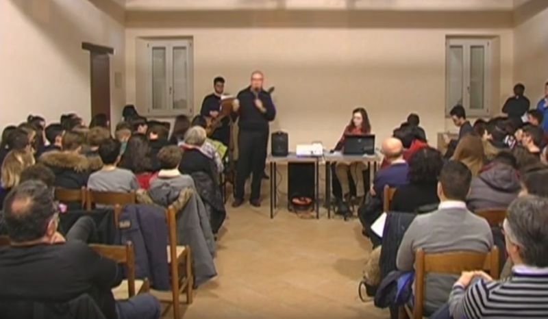 In verità, però, arriviamo in corsa perché il treno della GMG è già partito ed ha fatto anche la sua prima tappa a Montegiorgio lo scorso 25 novembre. All’incontro, durato oltre 3 ore, c’erano circa 120 giovani da quasi tutte le parrocchie della Vicaria. Ogni gruppo si è presentato agli altri mettendo in rima il nome e le caratteristiche del proprio paese. Dopo la preghiera iniziale si sono susseguite immagini e testimonianze molto belle e significative tenute insieme dal tema della giornata: toccare e sentire.