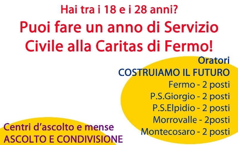 Diocesana di Fermo per un totale di 22 posti disponibili presso la Caritas Diocesana, la rete delle Caritas parrocchiali e gli