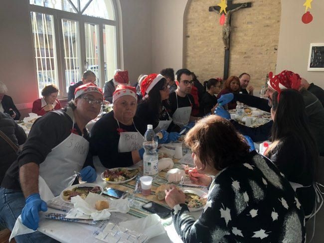 Al pranzo tante persone, molti ospiti abituali della mensa ma anche persone che vivono sole (anziani, vedovi e vedove, persone disabili) e volontari che hanno voluto condividere con le loro famiglie il pranzo di Natale insieme, in un gesto che si rinnova dal 2007.