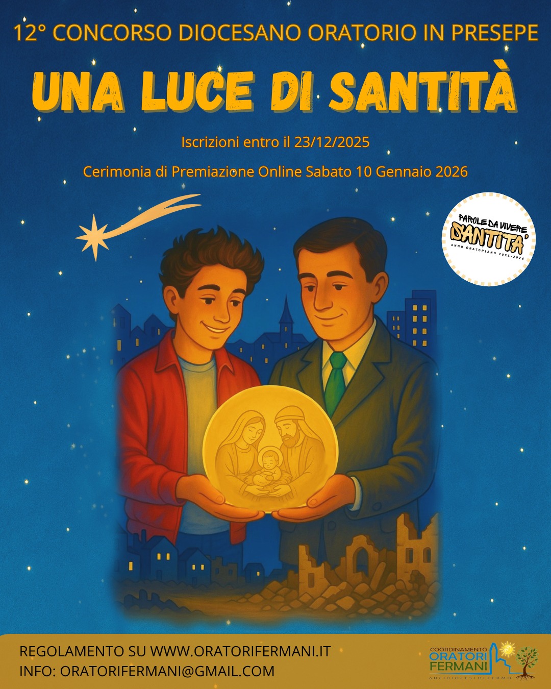 “Oratorio in Presepe” è l’occasione, durante il periodo dell’avvento, che il Coordinamento Oratori Fermani offre ogni anno a tutti gli oratori per riscoprire il mirabile segno del presepe. E l’invito è riscoprire la sua bellezza e il suo fascino non solo attraverso parole, ma “toccandolo con mano”, realizzandolo insieme ai bambini, ragazzi, adolescenti, animatori, educatori, volontari! Sarà l’occasione per vivere momenti di aggregazione, di creatività e di catechesi intorno a Gesù bambino, per far respirare il clima del Natale, per illuminare gli spazi con la scena della Natività e per testimoniare a tutta la comunità la luce di Cristo salvatore.
