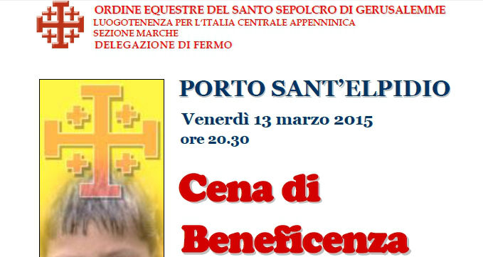 Una serata di beneficenza è stata organizzata venerdì 13 marzo a Porto Sant’Elpidio presso il ristorante “il Gambero”, una cena nel corso della quale si parlerà dell’Ordine, delle sue finalità, delle sue attività.