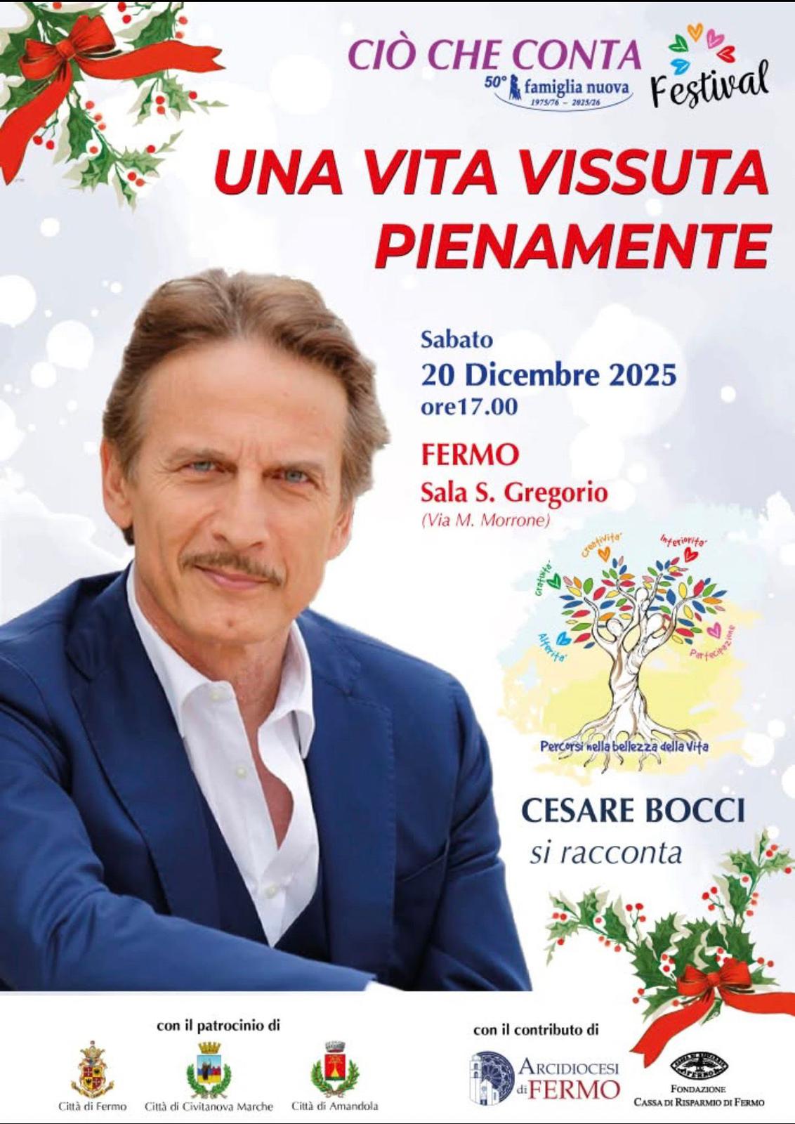 Si è svolto sabato 20 dicembre, dalle ore 17.00 alle 18.30 presso la Chiesa di San Gregorio a Fermo, un incontro con l’attore Cesare Bocci, dal titolo “Una vita vissuta pienamente”, organizzato da Famiglia Nuova, consultorio Familiare.