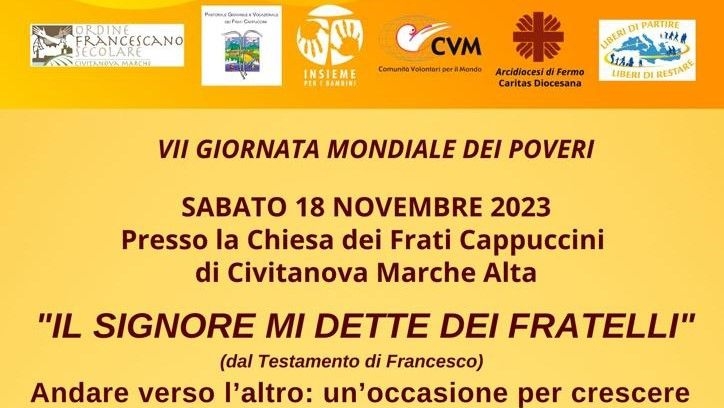 In occasione della VII^ Giornata Mondiale dei Poveri, si svolgerà sabato prossimo 18 novembre a Civitanova Marche presso la Chiesa dei Frati Cappuccini di Civitanova Alta, un’importante ed interessante incontro dal tema “Signore mi dette dei fratelli”. (dal Testamento di San Francesco).